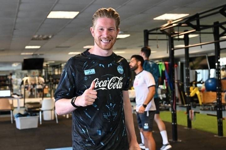 直播吧7月19日讯 德布劳内参加了在那不勒斯的亮相发布会。